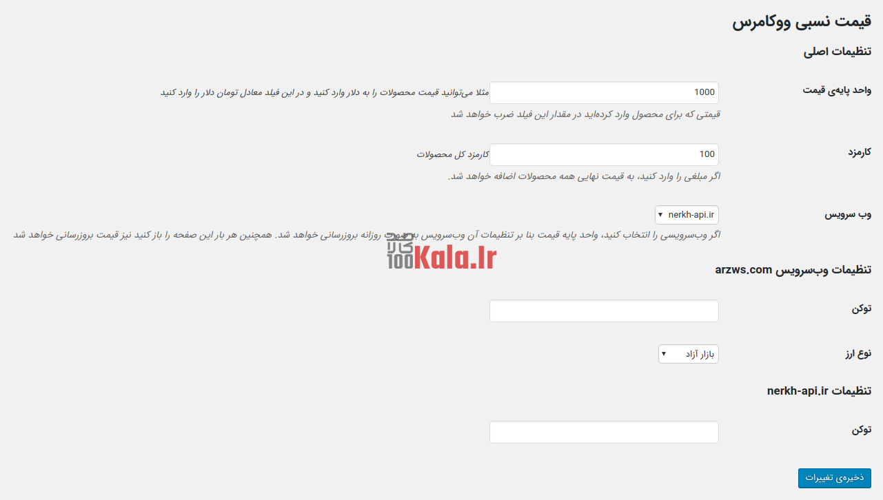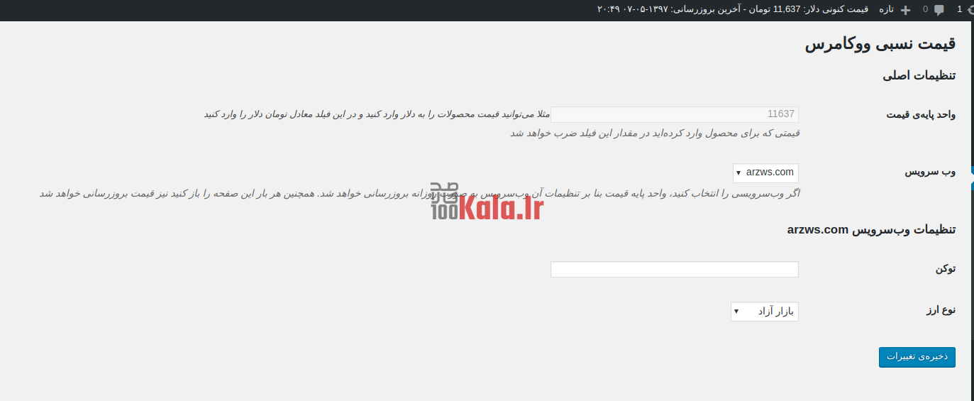 سپس با تعیین نوع وب سرویسی که استفاده می‌کنید، قیمت پایه به صورت خودکار از وب سرویس بروزرسانی خواهد شد. بروزرسانی قیمت به دو صورت انجام می شود. حالت اول به صورت خودکار افزونه روزانه قیمت را دریافت خواهد کرد. همچنین هربار که صفحه تنظیمات افزونه را باز کنید هم قیمت بروزرسانی خواهد شد. که این مورد جهت بروزرسانی لحظه‌ای و دستی قیمت تعیین شده است.
