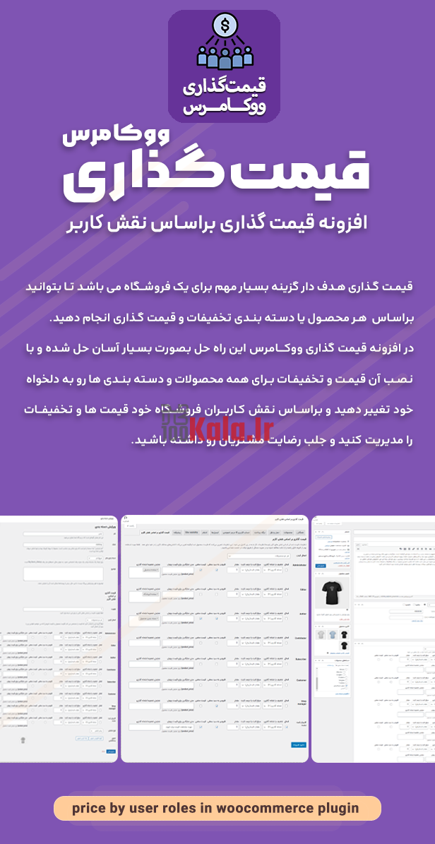 افزونه قیمت گذاری براساس نقش کاربر در ووکامرس قیمت هر محصول یا دسته بندی محصول و یا بطور کلی برای هر نقش کاربر بصورت اختصاصی یا با درصد تخفیف بصورت سفارشی انجام می دهد.