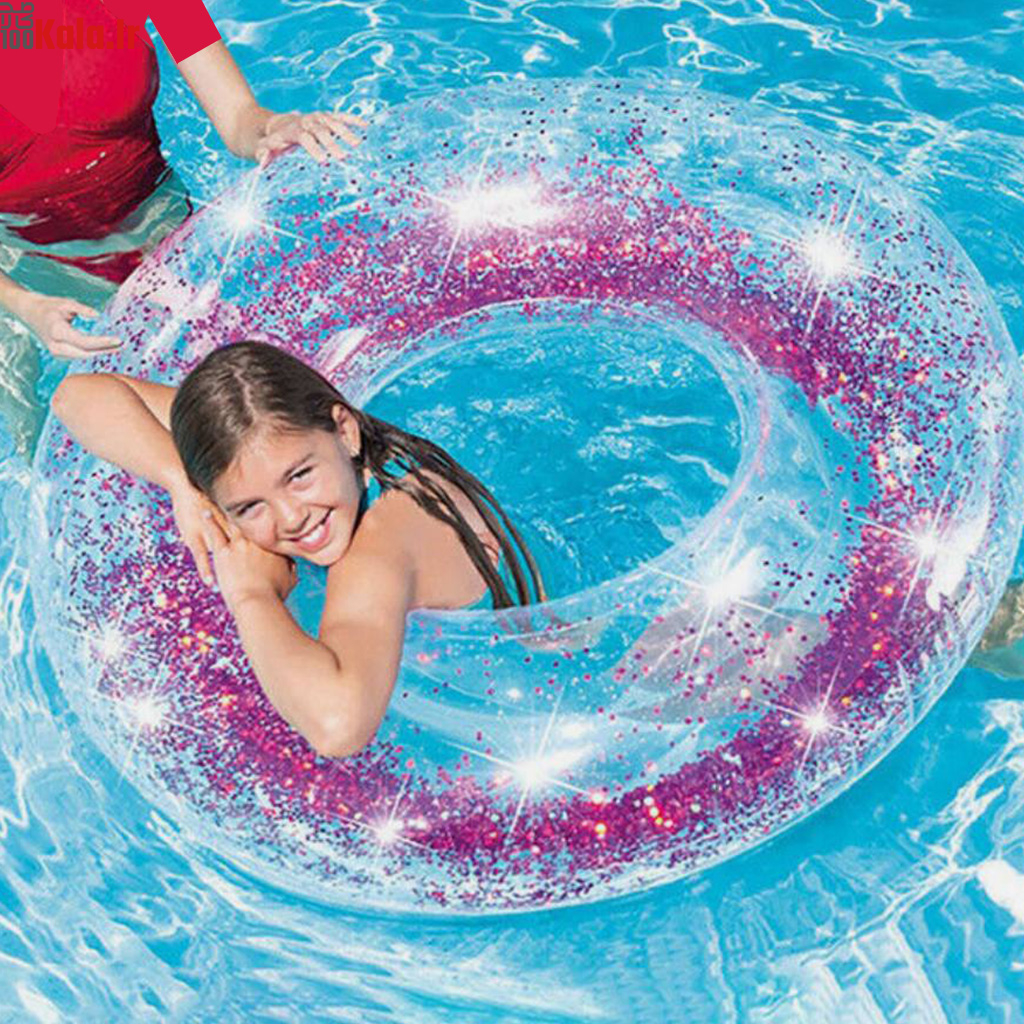 این حلقه با طراحی مدرن و اکلیلی خود نه تنها زیبایی چشمگیری دارد بلکه به محض ورود به آب توجه همه را جلب میکند. درون بدنه شفاف آن اکلیلهای درخشان قرار گرفتهاند که با انعکاس نور خورشید روی سطح آب، جلوهای خاص و لوکس ایجاد میکنند. همین ویژگی باعث میشود استفاده از این حلقه برای کودکان و حتی بزرگسالان تبدیل به یک سرگرمی هیجان انگیز شود.