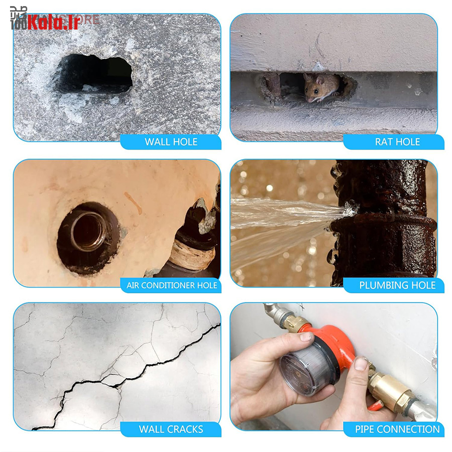 برای آب بندی دستشویی و حمام و پر کردن شکاف ها و منافذپر کردن سوراخ رایادتور و آبگرمکن و کولر گازی حتی مدل سازی، ماکت سازی، ترمیم مجسمه و ظروف عتیقه این محصول کاملا مناسب است می توانید برای ترمیم قطعاتی که شکسته می باشد و قطعه ای از آن گم شده استفاده کنید. از سایر ویژگی های این چسب تحمل گرمای بالای آن می باشد و همچنین فشار بالایی را تحمل می کند.این محصول در چند ساعت اول به گیرایی می رسد و بعد از ۱۸ الی 24 ساعت نصبت به هوای محیط کامل خشک می شود. کاربرد بسیار آسان و دوام و قدرت بسیار بالایی برخوردار می باشد. مکمل فوق قوی بتن و ملات های سیمانی است و قابلیت چسباندن سنگ. چوب. شیشه. آیینه. پلاستیک و… به انواع سطوح است.