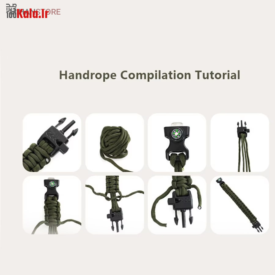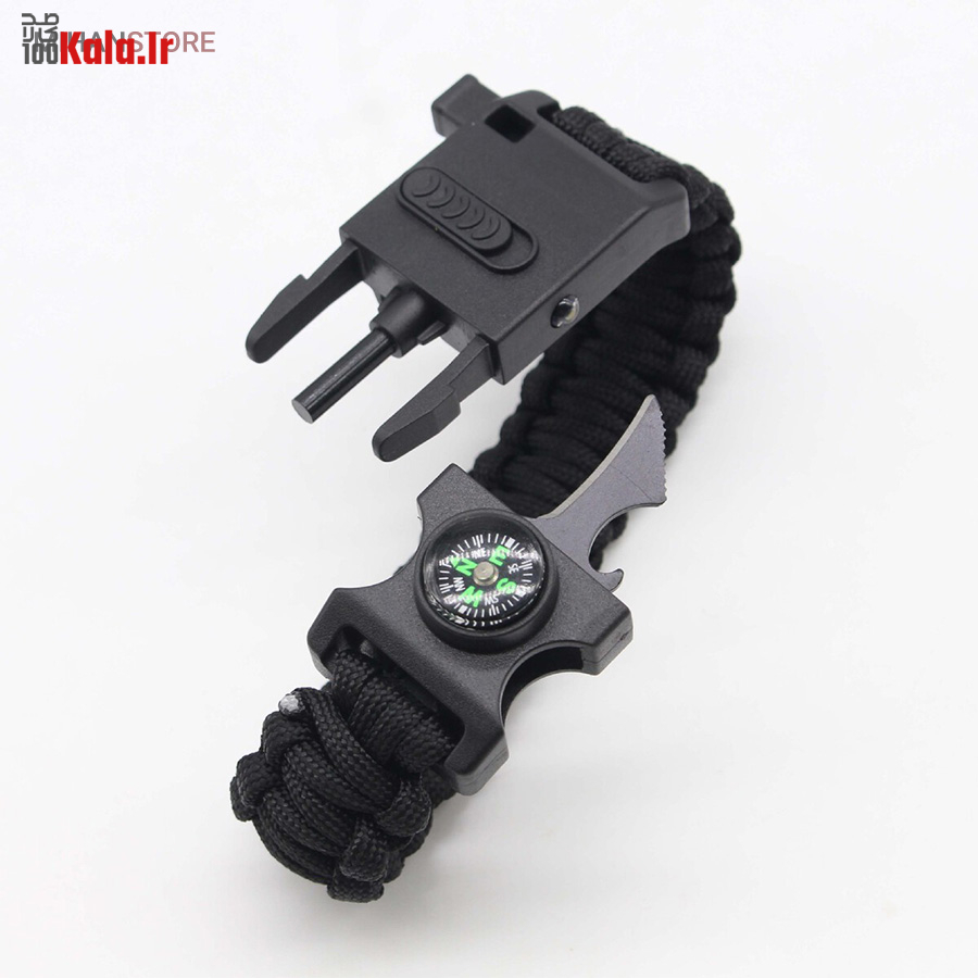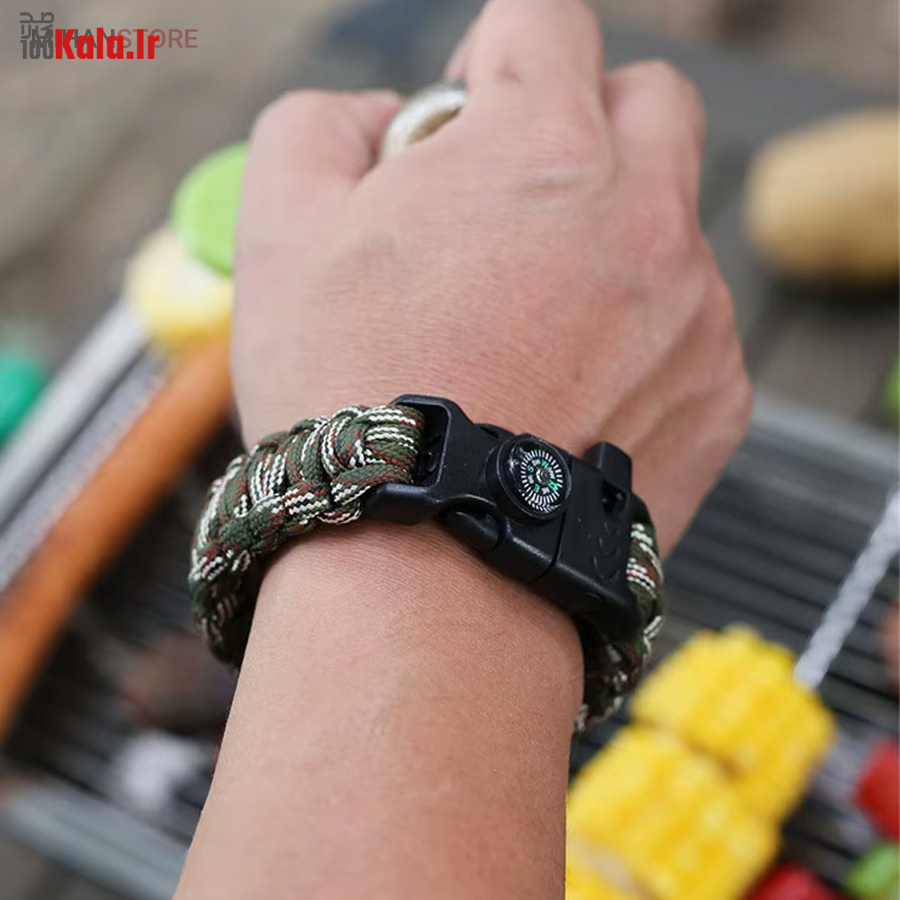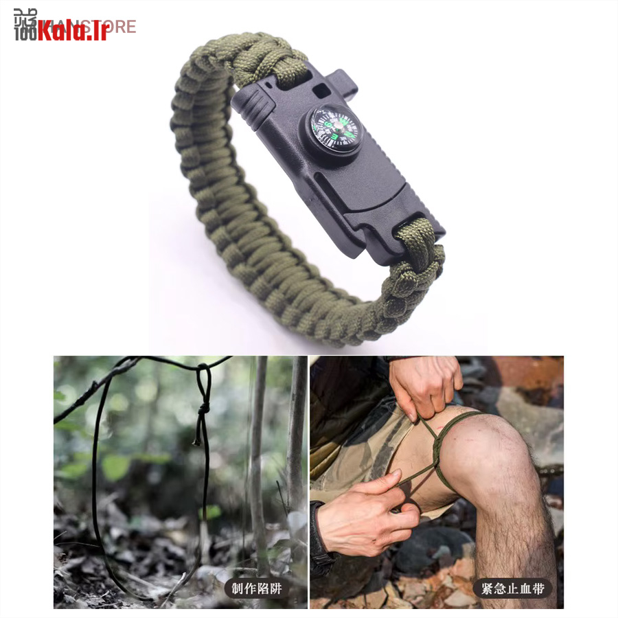 نیز استفاده کرد. دستبند پاراکورد و نجات معمولا از 7 تا 9 رشته طناب با طولی 3 تا 4 متری تشکیل شده است که می‌‌توان برای مصارف مختلف در سفر از آن استفاده کرد. دارای ضروریات مربوط به یک سفر بوده و همچنین می‌‌تواند به دلیل زیبایی آن نیز مورد استفاده قرار گیرد، این وسیلۀ کاربردی می‌‌تواند کادوی بسیار مناسبی برای افرادی باشد که بسیار در طبیعت سفر می‌‌کنند. قطب نما، سوت اضطراری این سوت سطح سر و صدا را می‌تواند تا 110 db ایجاد کند و به امدادگران سیگنال دهد و چاقو که برای برش طناب و مواقع ضروری مورد استفاده قرار می‌گیرد و پشت چاقو در قسمت بالا هم دندانه‌هایی قرار دارد.