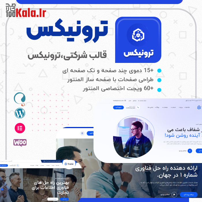قالب ترونیکس (Tronix) یک پوسته شرکتی پیشرفته برای وردپرس است که مخصوص شرکتهای فناوری اطلاعات، آژانسهای نرم افزاری و مجموعههای طراحی وب توسعه داده شده است. برای راه اندازی یک سایت شرکتی مدرن، واکنش گرا و مجهز به تمام امکانات مورد نیاز کسب و کارهای فناوری، بهترین انتخاب استفاده از ترونیکس است؛ گزینهای حرفهای برای کسانیکه به دنبال خرید قالب شرکتی هستند.