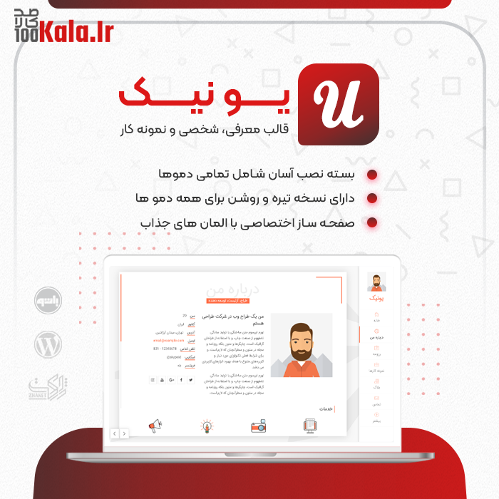 قالب یونیک یک قالب بسیار زیبا و انعطاف پذیر می باشد که در دوازده دمو اختصاصی سفارشی سازی شده که برای معرفی رزومه و نمونه کارهای شخصی و شرکت شما و در کل برند سازی شخصی و شرکتی کمک زیادی به شما می کند. با قالب رزومه یونیک می توانید بدون نیاز به دانش کدنویسی و تنها با کشیدن و رها کردن عناصر در صفحه ساز، صفحاتی زیبا خلق کنید.