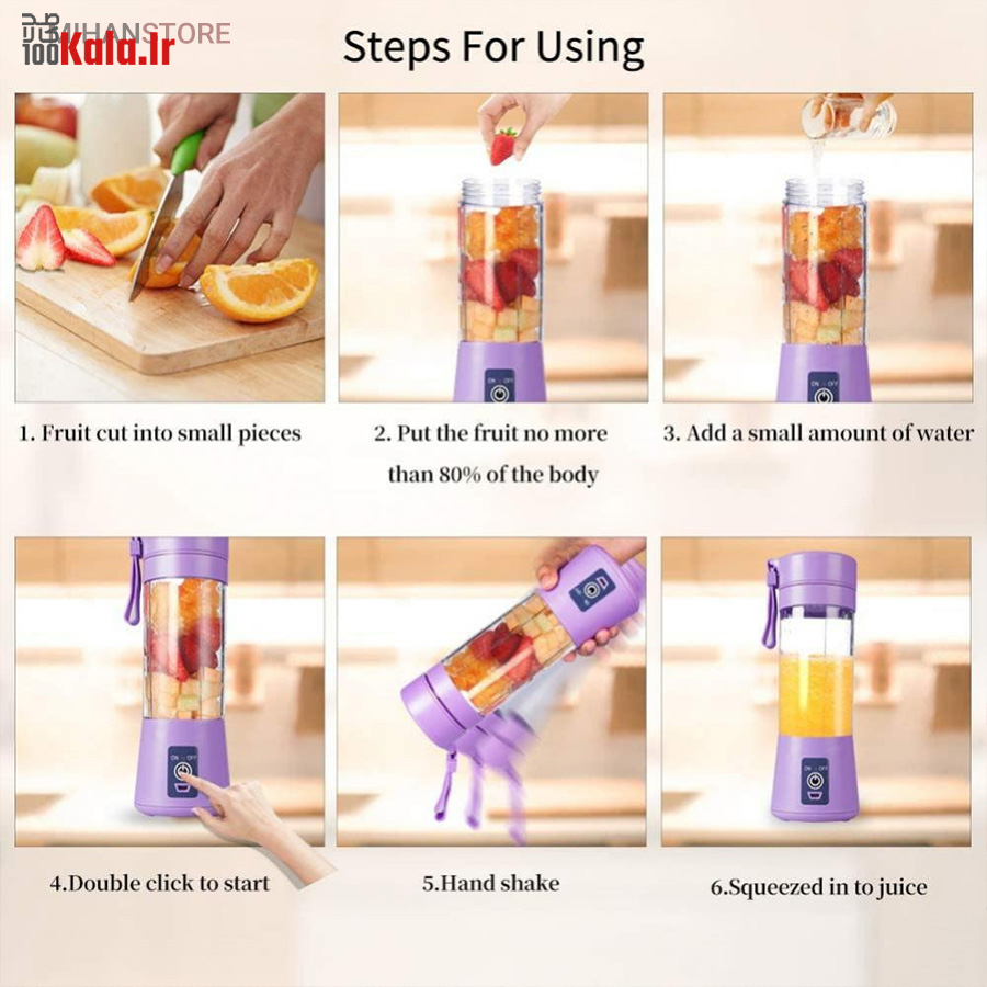 مخلوط کن شارژی قابل حمل juice cup بهترین انتخاب برای افرادی است که به دنبال یک میکسر پرقدرت برای درست کردن اسموتی و شیک های ورزشی هستند. این محصول دارای یک موتور 3.6V با سرعت چرخش 15000 تا 22000 دور در دقیقه و تیغه 6 پره استیل ضد زنگ بسیار قوی می باشد که انواع شیک های میوه ای، پودرهای بدنسازی، سبزیجات، دانه های آجیلی و… را براحتی در چند ثانیه آماده می کند. این بلندر شارژی دارای شش تیغه فلزی پرقدرت بوده که قابلیت خرد کردن انواع مواد غذایی مانند میوه ها را داشته و دور موتور و استحکام تیغه های استیل ضد زنگ آن، قابلیت خرد کردن یخ را نیز به آن میدهد (البته بدلیل سختی بالای یخ امکان تضعیف و خرابی میکسر وجود دارد). ورزشکاران رشته های مختلف به خصوص بدنسازی و فیتنس میتوانند برای تهیه انواع اسموتی های رژیمی و شیک های پروتئینی از این مخلوط کن پرتابل هم در باشگاه و هم در منزل استفاده کنند.