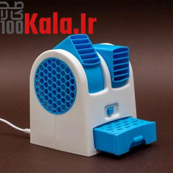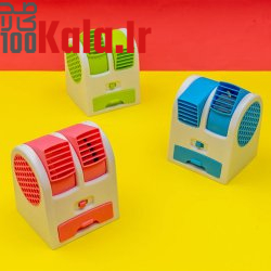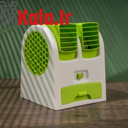 مینی کولر آبی رومیزی با قابلیت اتصال USB، قابل حمل و مناسب محیط‌های کوچک، دارای دو دریچه باد قابل تنظیم و مخزن آب برای خنک‌ کاری با باتری یا برق کار می‌کند.