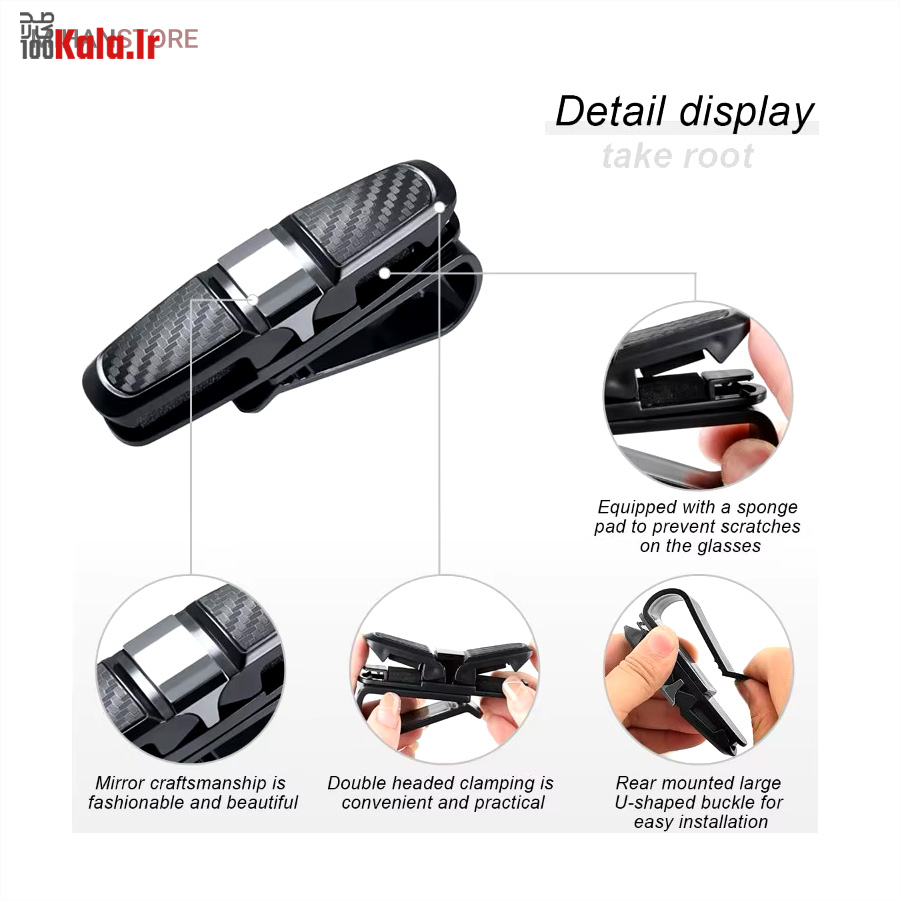 این گیره نگهدارنده کاربردی به گونهای طراحی و تولید شده است که مضاف بر عینک های آفتابی و طبی، میتواند برای نگهداری کارت سوخت، کارت های بانکی، رسیدها و حتی کابل AUX و موارد مشابه نیز مورد استفاده قرار گیرد. این محصول به طور کامل در مکان نصب محکم و ثابت میشود و بهیچ وجه لرزش و جابجایی نخواهد داشت. همچنین پدهایی که در قسمت داخلی این گیره تعبیه شده اند از آسیب دیدن لوازم شما جلوگیری می کند. همچنین از ویژگیهای مهم این محصول این است که شما می توانید با خرید نگهدارنده عینک کلیپسی خودرو آن را هم به داشبورد ماشین و هم به آفتابگیر نصب بفرمایید. این وسیله با توجه به دارا بودن سایز کوچک فضای اندکی را اشغال می کند و جلوی دید راننده را نمیگیرد.
