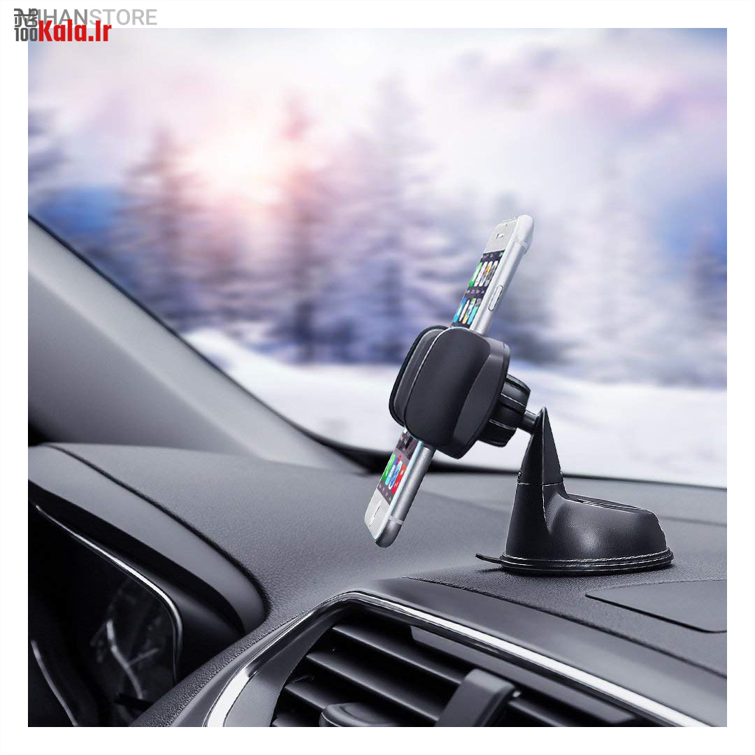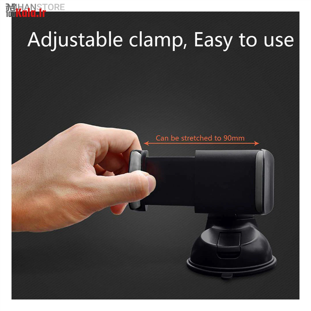 پایه نگهدارنده گوشی موبایل با بادکش های لاستیکی بسیار قوی قابلیت چسبندگی برروی هر سطحی از جمله داشبورد خودرو، شیشه جلویی اتومبیل، میز کار و غیره را خواهد داشت. جنس بدنه این هولدر از پلاستیک بوده و در قسمت گیره‌ای از پوشش سیلیکون برای جلوگیری از لیز خوردن گوشی موبایل استفاده شده است. با استفاده از هولدر موبایل ذکر شده امکان چرخش 360 درجه و یا قرار گرفتن در حالت عمودی و افقی امکان پذیر می‌باشد که در هنگام رانندگی آسودگی خاطر بالایی برای راننده فراهم می‌آورد. این پایه نگهدارنده گوشی موبایل برای گوشی های هوشمند با سایز حداکثر 6 اینج مناسب می‌باشد. پایه سیلیکونی که به کمک بادکشی بودن به سطوح وصل می شود جوری که طراحی شده که شما می توانید بارها پایه را جدا کنید و جابجا کنید و مثل روز اول با همان مقاومت به سطح وصل شود و اگر در مجاورت گردو خاک چسبندگی سیلیکون کم شد فقط کافیست پایه را بشورید و استفاده کنید.