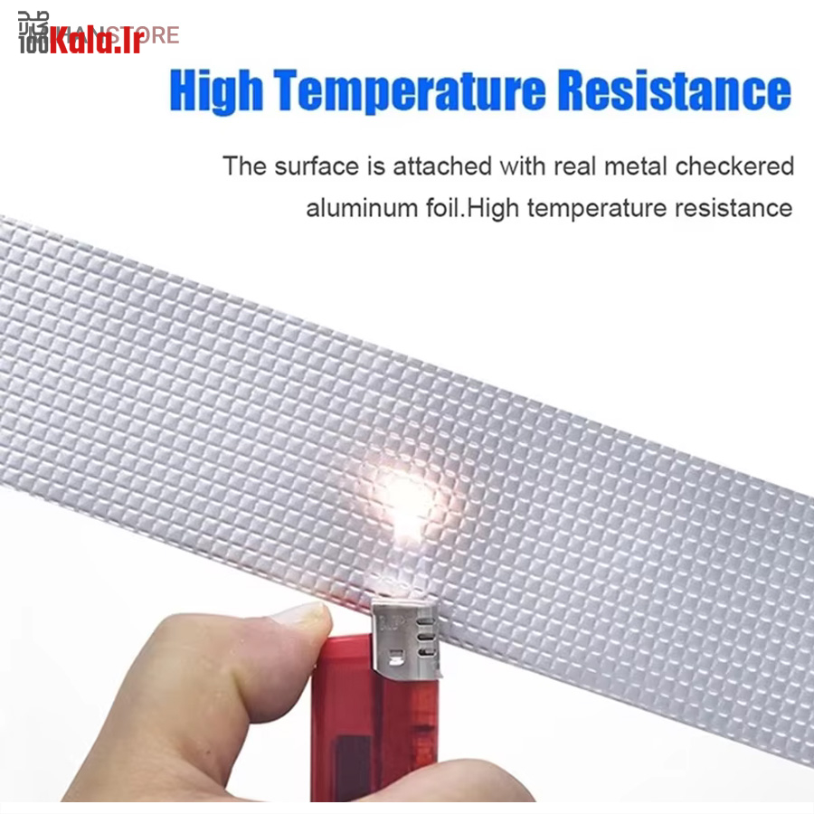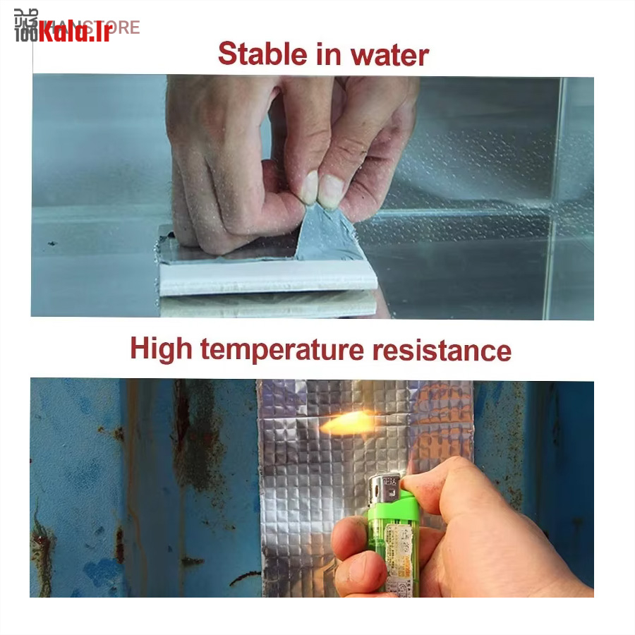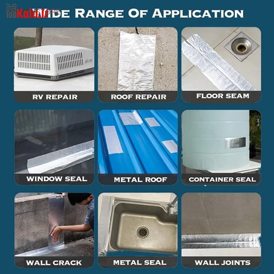چسب آب بندی نواری نمونه ای جدید از ابزار پوشش محسوب می شود که دارای سطح رویین شبکه ای به رنگ نقره ای می باشد، خصوصیتی که زیبایی ظاهری را برای آن تا حدی پدید آورده، به طوری که بتوان از کالا در بیشتر موقعیت های مکانی بدون نگرانی از تخریب شکل ظاهری استفاده نمود. سطح زیرین محصول، لایه ای چسبی وجود دارد که چسبندگی بسیار خوبی را دارا است، بطوریکه به اغلب سطوح می توان آن را چسباند و استفاده کرد، البته با دقت به این موضوع که بهترین عملکرد برای کالا روی سطح یکدست (مسطح)، بدون برجستگی است. پهنای چسب درزگیر، 5 سانتی متر با طول 5 متر می باشد که می توانید از آن برای پوشش ترک سطوح مختلف استفاده کنید، کافی است سطح مورد نظر را تمیز کنید و در نهایت برچسب را روی منافذ، ترک و یا شیار مورد نظر به خوبی بچسبانید بطوریکه کامل آن پوشش دهد. برچسب آب بندی، مقاومت لازم در برابر آب را نیز دارد بنابراین کمترین محدودیت ممکن در استفاده از آن را خواهید داشت.