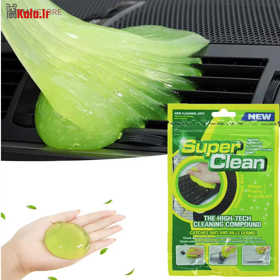 ژل تمیز کننده، محصولی جدید با عملکردی فوق العاده است. این ژل به گونه ای است که محدودیت استفاده ندارد و می توانید به دفعات از آن استفاده نمایید. ژل جادویی تمیز کننده Super Clean، مناسب برای تمیز کردن سطوح مختلف نظیر کیبورد، کنترل تلویزیون، موبایل، خودرو و… است. از ویژگی های بارز این ژل امکان استفاده برای قسمت هایی از سطوح است که دسترسی به آنها دشوار است، مانند فضای بین صفحه کلید رایانه و لپ تاپ است که به سادگی می تواند این قسمت ها را تمیز کند.
