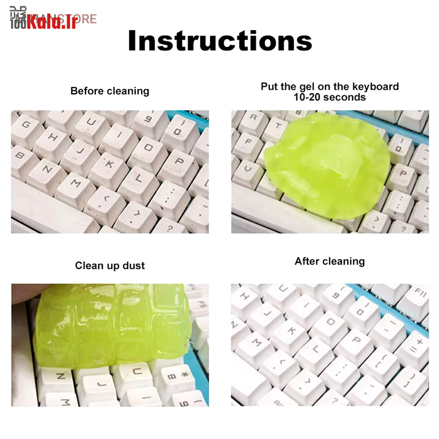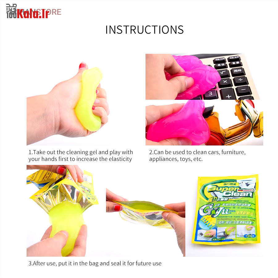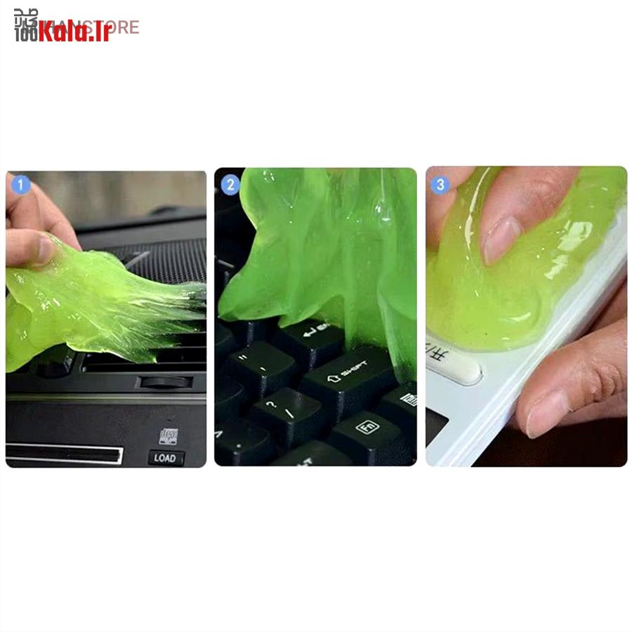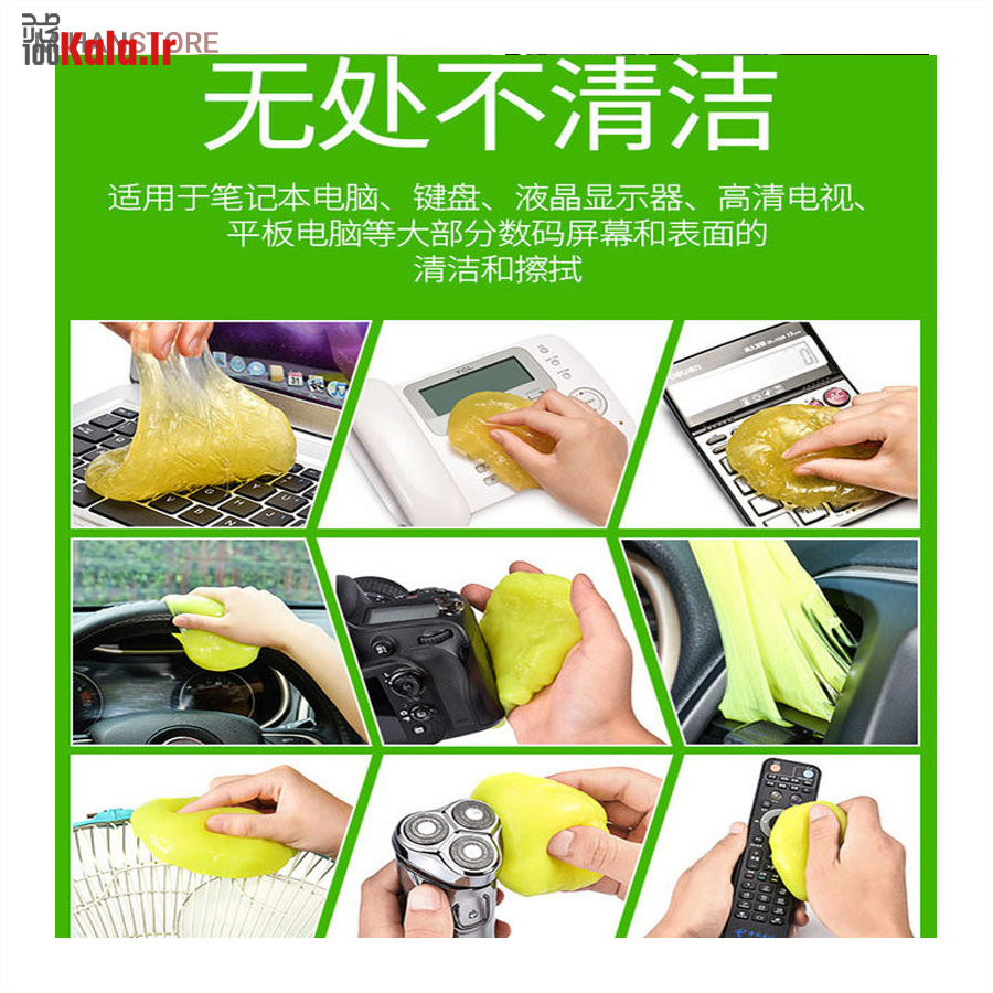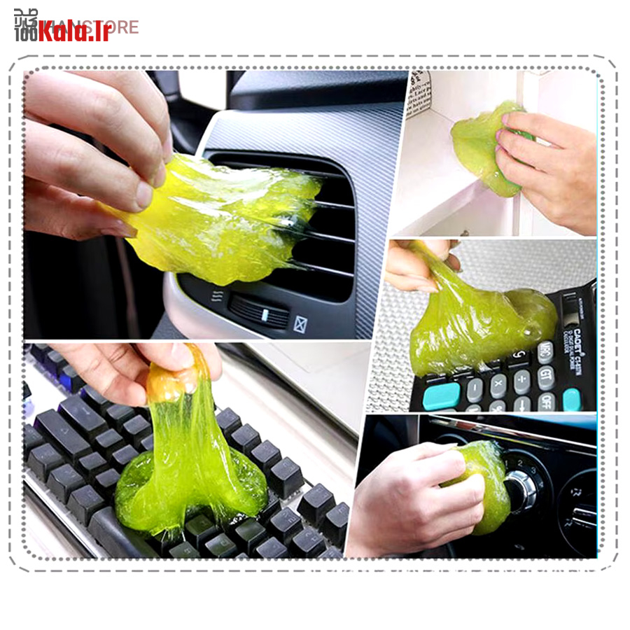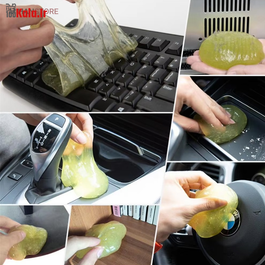 ژل تمیز کننده جادویی Super Clean محصولی جدید و جالب می باشد که با استفاده از آن براحتی می توانید تمام لوازمی که در تصاویر مشاهده می کنید را براحتی هر چه تمام تر تمیز کرده و مانند روز اولشان کنید، این ژل با انعطاف بسیار عالی به تمام نقاطی که نمی توان دستمال و… را کشید نفوذ کرده و براحتی تمام گرد و غبار و الودگی های موجود بر روی ان سطوح را جذب کرده و آن نقاط را کاملا تمیز و پاکیزه می کند.بسیاری از لوازم کاربردی در منزل مانند تلفن،کنتزل،کیبورد و… را می توان با این ژل جادویی براحتی تمیز کرد و علاوه بر آن ها در نظافت و تمیزی قسمت های مختلف خودرو نیز می توان از این ژل استفاده کرد و براحتی تمیز کرد.