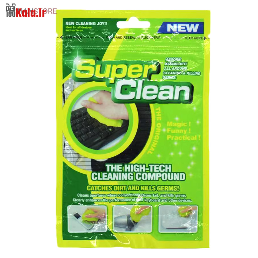 ژل جادویی تمیز کننده Super Clean می توانید گرد و غبار و کثیفی را که بین کلیدهای صفحه کلید قرار می گیرد و هر مکانی که با اسباب بازی های کلیدی کودکانتان نمی تواند به آن دسترسی پیدا کند را تمیز کنید. ژل جادویی تمیز کننده Super Clean با ساختار جنبشی خود که براحتی شکل می گیرد، به هر منطقه ای می رسد و آن را تمیز می کند. می توانید بارها از آن استفاده کنید.