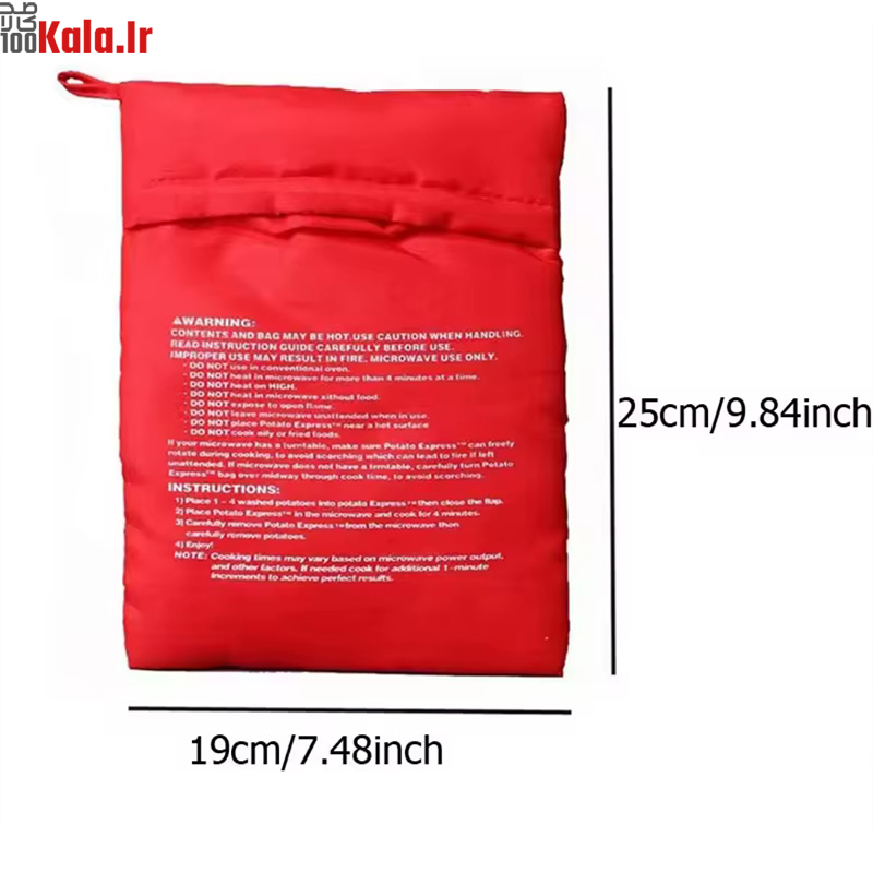 ابعاد این کیسه 25 × 19 سانتی‌ متر است که برای قرار دادن چندین سیب‌ زمینی بطور همزمان مناسب می‌باشد. همچنین برای پخت سایر مواد مانند نان، ذرت، هویج و سبزیجات نیز قابل استفاده است.